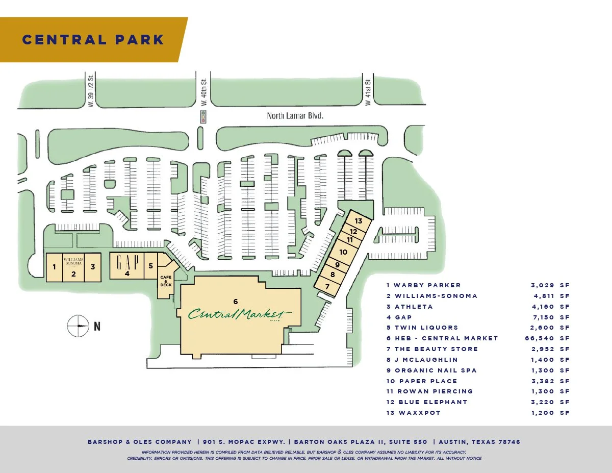 Central Park is a 103,044 square foot community retail center anchored by H-E-B’s award-winning Central Market.